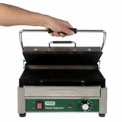 Quickly cook up lunchtime favourites with the WPG250K Waring large panini grill. Designed for reliability and performance, the grill makes it easy to cook everyday best-sellers like toasted sandwiches, panini and wraps.